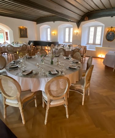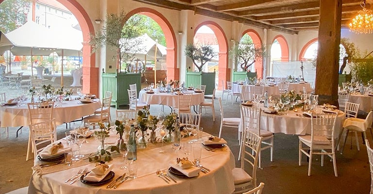 Je nach Wetter und Stimmung schlemmen wir entweder in der urigen Scheune oder im festlichen Rittersaal.